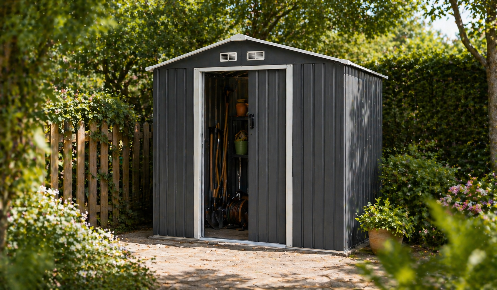 Spazi chiusi per organizzare attrezzi e materiali, utili per mantenere ordine nelle aree esterne